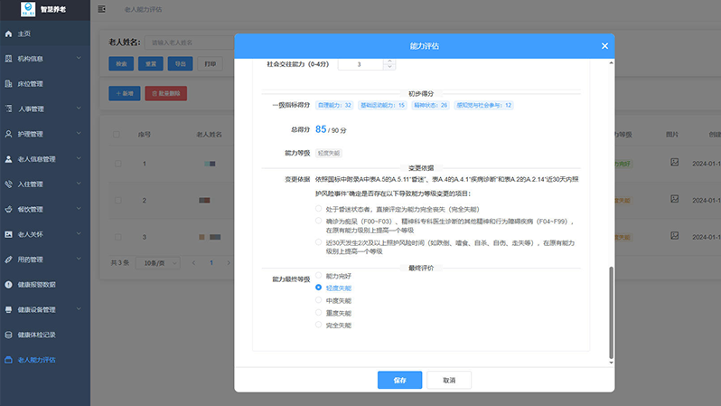 机构端养老平台聚焦养老机构运营管理全流程,功能覆盖营销管理、接待管理、档案管理、长者能力评估、合同管理、入住与退住管理、床位管理、餐饮管理、照护服务管理医护服务、费用设置与收费管理、库存管理等。平台支持客户信息记录与跟进以优化营销,通过评估确定护理等级与费用,利用电子化合同与床位管理规范入住流程,配备智能硬件保障老人安全,开发机构端与家属端小程序实现工单管理健康管理等功能,同时借助数据可视化大屏展示机构养老数据,助力养老机构提升运营效率与服务质量,实现资源优化配置。